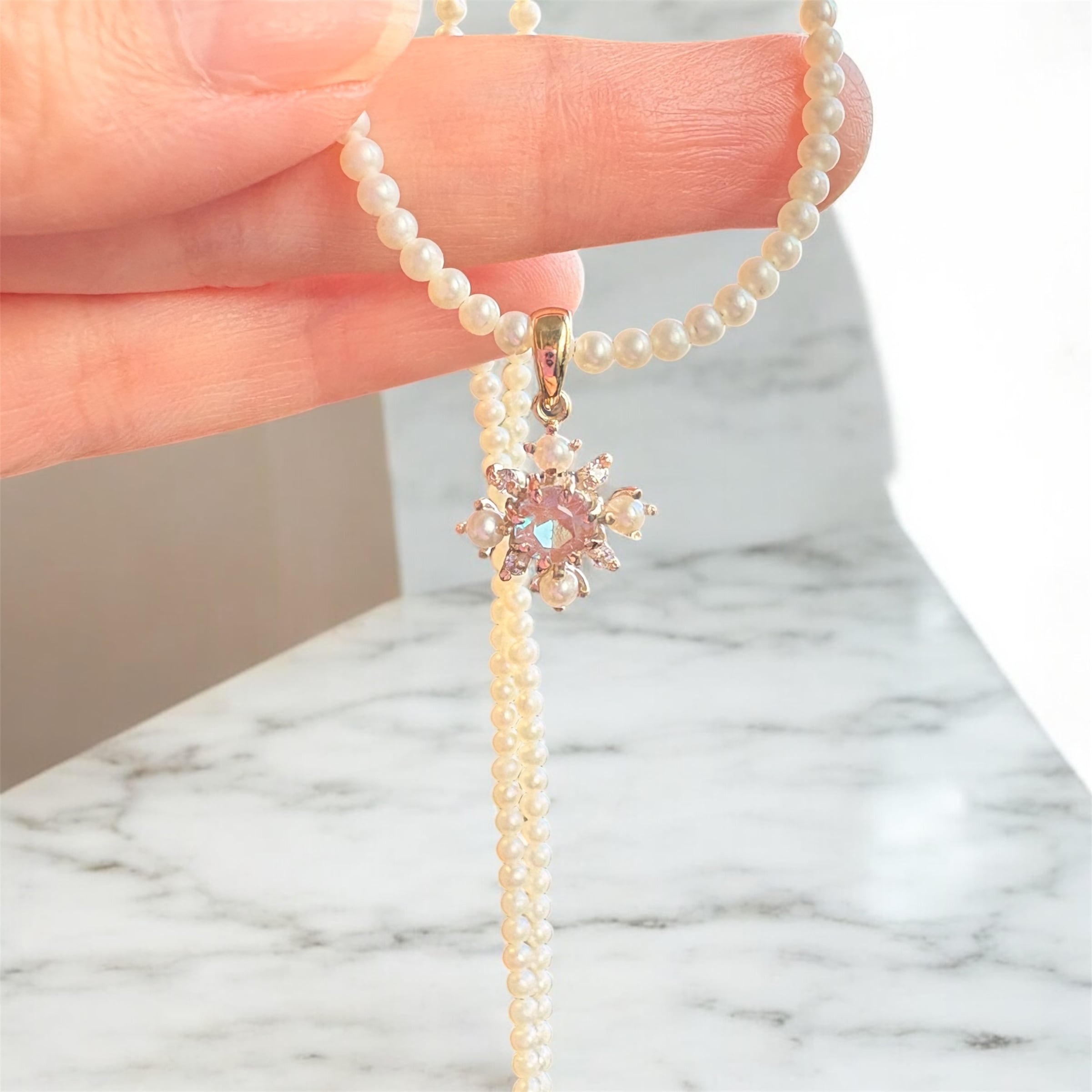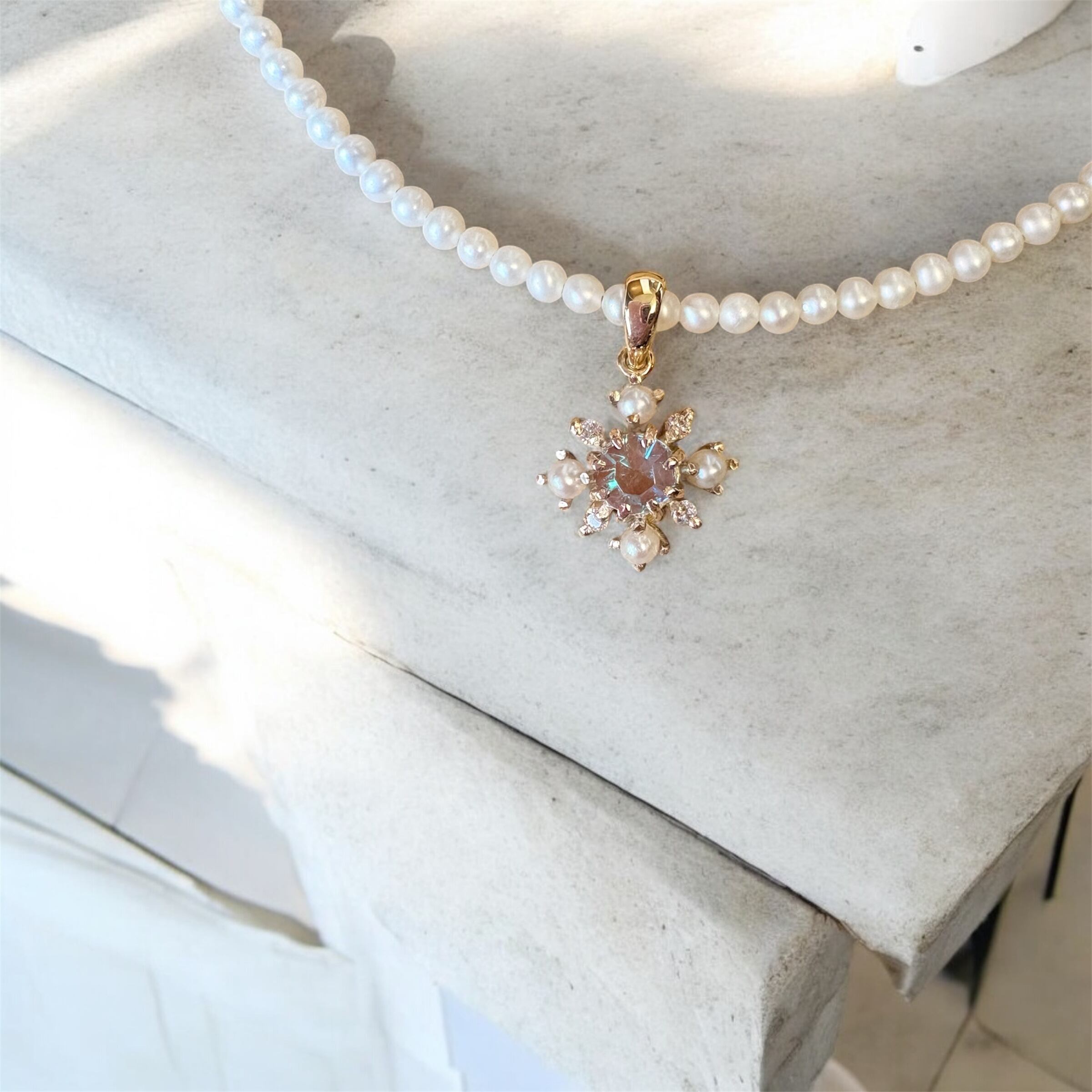 K10ゴールドで作られたネックレスは高級感を漂わせ、デイリー使いや特別な日のコーディネートにぴったりです。サフィレットの神秘的な輝きとパールの柔らかな風合いが、あなたの魅力を一層引き立ててくれることでしょう。